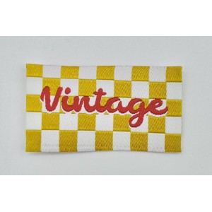Cette étiquette tissée avec l’inscription « Vintage » rouge sur fond damier blanc et noir est à coudre sur vos vêtements.