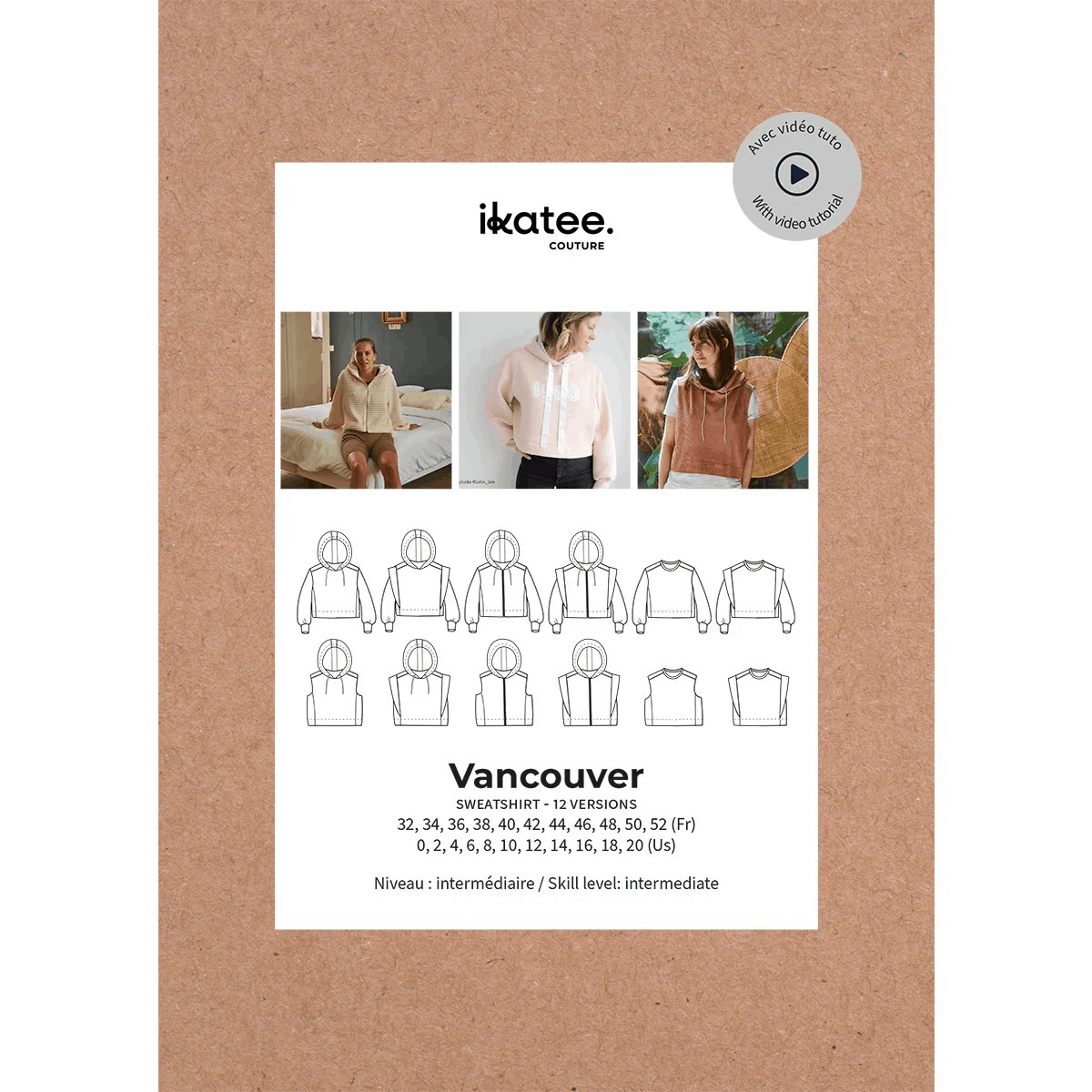 Vancouver est un patron de sweatshirt pour femme. Il se caractérise par sa longueur assez courte (sous la taille) et sa forme très ample, loose. Ce modèle peut se décliner avec une ouverture par fermeture à glissière sur le devant ou bien sous la forme d’un hoodie classique, sans ouverture. Vous pourrez choisir d’ajouter une capuche doublée ou un col classique avec encolure dégagée, des épaulettes, des manches loose ou de réaliser ce modèle sans manches.