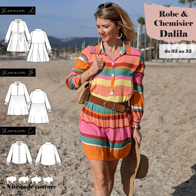 Dalila est un super patron à avoir dans sa patronthèque car il comprend deux patrons en un dont le patron d’une très jolie chemise aux détails féminins.